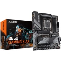 B650 GAMING X AX V2 Key Features AMD Socket AM5: Supports AMD Ryzen 7000/ Ryzen 8000 Series Processors Unparalleled Performance: Direct 8+2+2 Phases Digital VRM Solution Dual Channel DDR5:4 x SMD DIMMs with AMD EXPO & Intel XMP Memory Module Support SuperSpeed Storage:1 x PCIe 5.0 x4 + 2 x PCIe 4.0 x4 M.2 Connectors Advanced Thermal Design & M.2 Thermal Guard:To Ensure VRM Power Stability & 25110 M.2 SSD Performance EZ-Latch:PCIe x16 Slot with Quick Release Design Fast Networks:2.5GbE LAN & Wi-Fi 6E 802.11ax Extended Connectivity:DP, HDMI, Rear USB-C 10Gb/s, Front USB-C 20Gb/s Smart Fan 6:Features Multiple Temperature Sensors, Hybrid Fan Headers with FAN STOP Q-Flash Plus:Update BIOS Without Installing the CPU, Memory and Graphics Card Digital VRM Design 8+2+2 Phases Digital VRM Solution EXPO & XMP Support DDR5 EXPO & XMP Overclocking Up to 8000 and Beyond Thermal Fully Covered MOSFET Heatsink Future Connectivity The ultimate connectivity with blazing data-transfer speeds through the next generation network and storage 802.11ax Wi-Fi 6E The latest Wireless solution 802.11ax Wi-Fi 6E with new dedicated 6GHz band, enables gigabit wireless performance, provides smooth video streaming, better gaming experience, few dropped connections and speeds up to 2.4Gbps. Moreover, Bluetooth 5 provides 4X range over BT 4.2 and with faster transmission. 2.5GbE LAN Supercharge your gaming with 2.5GbE LAN Achieve lightning-fast speeds, minimal lag, and unbeatable performance to elevate your gaming setup and dominate the competition. PCIe 4.0 Hardware Design GIGABYTE B650 Motherboards are ready to work with the PCIe 4.0 devices which are expected to experience twice bandwidth than the current PCIe 3.0 devices. To reach the high speed and maintain good signal integrity, GIGABYTE R&D uses the low impedance PCB to provide the maximum performance. Hi-Fi Audio High-End Audio Capacitors GIGABYTE motherboards use high-end audio capacitors. These high quality capacitors help deliver high resolution and high fidelity audio to provide the most realistic sound effects for gamers. Audio Noise Guard GIGABYTE motherboards feature an audio noise guard that essentially separates the board?s sensitive analog audio components from potential noise pollution at the PCB level. Smart Fan 6 Smart Fan 6 contains several unique cooling features that ensure gaming PC maintain its performance while staying cool and quiet. Multiple fan headers can support PWM/DC fan and pump, and users can easily define each fan curve based on different temperature sensors across the board via intuitive user interface. Cooling Features High Current Support: Each fan headers support PWM and DC fan and Water Cooling Pump , and up to 24W (12V x 2A) with Over-Current Protection Precision Control: Multiple temperature/fan speed control points for precise fan curve Dual Curve Mode: Slope/Stair dual mode for different user scenario Fan Stop: Fan can stop completely below users' specified temperature point Smart Fan 6 BIOS UI Improve fan curve UI: We increase control points from 5 to 7 and larger fan speed graph for precise and easier fan curve control. Slope/Stair dual graph mode: Fan curve can be quickly switch with Slope and Stair modes for different user scenario. Slope is traditional and intuitive linear fan speed curve. With newly added Stair non-linear mode, fan keeps at same speed between specified temperature interval. Manual Input: For advanced users, we provide fan speed manual input for more precise control. EZ Tuning: Use can place 4 EZ Tuning points at rough temperature/fan speed, and Smart Fan 6 can quickly generate a fan curve. Fan curve profile: Fan curve profile can be saved in BIOS ROM, profile will be kept after updating BIOS. Specifications CPU AMD Socket AM5, support for: AMD Ryzen 7000/ Ryzen 8000 Series Processors Chipset AMD B650 Memory Support for DDR5 6400(OC)/6200(OC)/6000(OC)/5600(OC)/5200/4800/4400 MT/s memory modules 4 x DDR5 DIMM sockets supporting up to 192 GB (48 GB single DIMM capacity) of system memory Dual channel memory architecture Support for non-ECC Un-buffered DIMM 1Rx8/2Rx8/1Rx16 memory modules Support for AMD EXtended Profiles for Overclocking (AMD EXPO) and Extreme Memory Profile (XMP) memory modules Onboard Graphics Integrated Graphics Processor AMD Radeon Graphics support: 1 x DisplayPort, supporting a maximum resolution of 3840x2160@144 Hz 1 x HDMI port, supporting a maximum resolution of 4096x2160@60 Hz Audio Realtek Audio CODEC High Definition Audio 2/4/5.1/7.1-channel LAN Realtek 2.5GbE LAN chip (2.5 Gbps/1 Gbps/100 Mbps) Wireless Communication module Realtek Wi-Fi 6E RTL8852CE (PCB rev. 1.0) WIFI a, b, g, n, ac, ax, supporting 2.4/5/6 GHz carrier frequency bands BLUETOOTH 5.3 Support for 11ax 160MHz wireless standard AMD Wi-Fi 6E RZ616 (MT7922A22M) (PCB rev. 1.1) WIFI a, b, g, n, ac, ax, supporting 2.4/5/6 GHz carrier frequency bands BLUETOOTH 5.2 Support for 11ax 160MHz wireless standard Expansion Slots 1 x PCI Express x16 slot (PCIEX16), integrated in the CPU: AMD Ryzen 7000 Series Processors support PCIe 4.0 x16 mode AMD Ryzen 8000 Series-Phoenix 1 Processors support PCIe 4.0 x8 mode AMD Ryzen 8000 Series-Phoenix 2 Processors support PCIe 4.0 x4 mode The PCIEX16 slot can only support a graphics card or an NVMe SSD. If only one graphics card is to be installed, be sure to install it in the PCIEX16 slot. Chipset: 2 x PCI Express x16 slots, supporting PCIe 3.0 and running at x1 (PCIEX1_1/2) Storage Interface 1 x M.2 connector (M2A_CPU), integrated in the CPU, supporting Socket 3, M key, type 25110/2580 SSDs: AMD Ryzen 7000 Series Processors support PCIe 5.0 x4/x2 SSDs AMD Ryzen 8000 Series-Phoenix 1/Phoenix 2 Processors support PCIe 4.0 x4/x2 SSDs 1 x M.2 connector (M2B_CPU), integrated in the CPU, supporting Socket 3, M key, type 25110/2580 SSDs: AMD Ryzen 7000 Series Processors support PCIe 4.0 x4/x2 SSDs AMD Ryzen 8000 Series-Phoenix 1 Processors support PCIe 4.0 x4/x2 SSDs AMD Ryzen 8000 Series-Phoenix 2