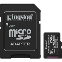 Kingston (SDCS3/256GB) Canvas Select Plus microSD memory card With Android A1 performance class Kingston?s Canvas Select Plus microSD is compatible with Android devices and designed with enhanced A1-rated performance. It offers reliable speed and large capacities for faster app loads and capturing images and videos in capacities of up to 1TB2. Powerful in performance, speed and durability, the Canvas Select Plus microSD is designed for reliability so you can take it anywhere with confidence that your photos, videos and files will be protected. Available with a lifetime warranty. Specifications Capacities 256GB Standard/Class Class 10, UHS-I, U1/U3, video class 10/30, A1 Performance 128GB-256GB: 150MB/s read, UHS-I speed class, U1, V10, A1 microSDXC card dimensions 11mm x 15mm x 1mm SD adapter dimensions 24mm x 32mm x 2.1mm Format exFAT Operating temperature -25C-85C Storage temperature -40C-85C Voltage 3.3V Warranty/support Lifetime