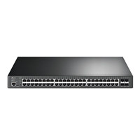 TP-Link JetStream 48-Port Gigabit and 4-Port 10GE SFP+ L2+ Managed Switch with 48-Port PoE+ Features 10G Lightning-Fast Uplink: Enjoy high-bandwidth connectivity and non-blocking switching capacity with four 10 Gbps SFP+ slots. PoE+ Output with 500 W Power Budget: Design your optimal network layout with forty-eight 802.3af/at PoE+ gigabit ports.* Centralized Cloud Management: Integrates into Omada SDN for cloud access and remote management. Abundant L2 and L2+ Features: It supports a complete lineup of L2 and L2+ features, including Static Routing, enterprise-level QoS, and IGMP Snooping. Robust Security Strategies: Helps protect LAN area investment with integrated IP-MAC-Port Binding, ACL, Port Security, and 802.1X Authentication. Standalone Management: Web, CLI (Console Port, Telnet, SSH), SNMP, RMON, and Dual Image bring powerful management capabilities. Enterprise Switch with 10G Uplink 4x 10 Gbps SFP+ slots provide non-blocking switching performance, and ultra-low latency, so reliable and lightning-fast connections to servers and other switches are easily built. Dedicated 48 PoE+ Ports (500 W Budget) for Numerous Applications The 48x 802.3af/at compliant PoE+ ports support up to 500 W total PoE power budget.* Designed to use a single Ethernet cable for data and power transmission, it offers flexible deployment for PoE-supported devices such as wireless access points, IP cameras, and IP phones, lowering infrastructure costs for small businesses. Software-Defined Networking (SDN) with Cloud Access Omada?s Software-Defined Networking (SDN) platform integrates network devices, including access points, switches, and gateways, providing 100% centralized cloud management. Omada creates a highly scalable network?all controlled from a single interface. Seamless wireless and wired connections are provided, ideal for use in hospitality, education, retail, offices, and more. Advanced L3 Features An abundance of L2+ and L3 features are supported to help build a highly scalable and robust network, providing a reliable and efficient solution for enterprises, campuses and ISPs Secure Networking Security features include IP-MAC-Port-VID Binding, Port Security, Storm Control, and DHCP Snooping to defend against a range of network threats. An integrated list of common DoS attacks is available, making it easier than ever to prevent them. In addition, the Access Control Lists (ACL, L2 to L4) feature restricts access to sensitive network resources by denying packets based on source and destination MAC address, IP address, TCP/UDP ports, or VLAN ID. Users? network access can be controlled via 802.1X authentication, which works with a RADIUS/Tacacs+ server to grant access only when valid user credentials are provided. Enterprise Level Features A complete lineup of L2+ features is supported, including 802.1Q VLAN, Port Mirroring, STP/RSTP/MSTP, Link Aggregation Control Protocol, and 802.3x Flow Control. Advanced IGMP Snooping ensures the switch intelligently forwards multicast streams to the appropriate subscribers, cutting unnecessary traffic. IGMP throttling & filtering restrict each subscriber on a port level to prevent unauthorized multicast access. Static Routing is a simple way of segmenting the network and internally routs traffic through the switch for improved efficiency. Advanced QoS Voice and video traffic can be prioritized based on IP address, MAC address, TCP port number, UDP port number, and more. With QoS (Quality of Service), voice and video services remain smooth, even when bandwidth is in short supply. ISP Features sFlow, QinQ, L2PT PPPoE ID Insertion, and IGMP authentication features are provided, developed with service providers in mind. 802.3ah OAM and Device Link Detection Protocol (DLDP) offer easy monitoring and troubleshooting of Ethernet links. IPv6 Support IPv6 functions such as Dual IPv4/IPv6 Stack, MLD Snooping, IPv6 ACL, DHCPv6 Snooping, IPv6 Interface, Path Maximum Transmission Unit (PMTU) Discovery, and IPv6 Neighbor Discover guarantee your network is ready for the Next Generation Network (NGN) without upgrading your hardware. Specifications HARDWARE FEATURES Interface 48x 10/100/1000 Mbps RJ45 PoE+ Ports 4x 10G SFP+ Slots 1x RJ45 Console Port 1x Micro-USB Console Port Fan Quantity 3 Power Supply 100-240 V AC~50/60 Hz PoE+ Ports(RJ45) Standard: 802.3at/af compliant PoE+ Ports: 48 Ports, up to 30 W per port Power Budget: 500 W* Dimensions ( W x D x H ) 17.3 x 13.0 x 1.7 in (440 x 330 x 44 mm) Mounting Rack Mountable Max Power Consumption 49.19 W (110V/60Hz) ( no PD device connected) 635.7 W (110V/60Hz) ( with 500 W PD device connected) Max Heat Dissipation 167.85 BTU/hr (110 V/60 Hz) (no PD connected) 2169.2 BTU/hr (110 V/60 Hz) (with 500 W PD connected) PERFORMANCE Switching Capacity 176 Gbps Packet Forwarding Rate 130.9 Mpps MAC Address Table 16 K Packet Buffer Memory 12 Mbit Jumbo Frame 9 KB SOFTWARE FEATURES Quality of Service 8 priority queues 802.1p CoS/DSCP priority Queue scheduling - SP (Strict Priority) - WRR (Weighted Round Robin) - SP+WRR Bandwidth Control - Port/Flow based Rating Limiting Smoother Performance Action for Flows - Mirror (to supported interface) - Redirect (to supported interface) - Rate Limit - QoS Remark L3 Features 16 IPv4/IPv6 Interfaces Static Routing - 48 static routes Static ARP - 128 Static Entries Proxy ARP Gratuitous ARP DHCP Server DHCP Relay - DHCP Interface Relay - DHCP VLAN Relay DHCP L2 Relay L2 and L2+ Features Link Aggregation - static link aggregation - 802.3ad LACP - Up to 8 aggregation groups, containing 8 ports per group Spanning Tree Protocol - 802.1d STP - 802.1w RSTP - 802.1s MSTP - STP Security: TC Protect, BPDU Filter, Root Protect Loopback Detection - Port based - VLAN based Flow Control - 802.3x Flow Control - HOL Blocking Prevention Mirroring - Port Mirroring - CPU Mirroring - One-to-One - Many-to-One - Tx/Rx/Both L2 Multicast IGMP Snooping - IGMP v1/v2/v3 Snooping - Fast Leave - IGMP Snooping Querier - IGMP Authenticatio