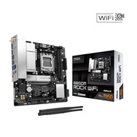 B850M Rock WiFi Unique Feature Superb Productivity - PCIe Gen5 (Graphics, M.2) - Dual Channel DDR5 Rock-Solid Durability - 6+1+1 Power Phase, Dr.MOS for VCore - Pre-Installed I/O Shield Ultrafast Connectivity - 2.5G LAN, 802.11axe Wi-Fi 6E Module EZ Update - BIOS Flashback Button - ASRock Auto Driver Installer EZ Troubleshooter CPU - Supports AMD Socket AM5 Ryzen? 9000, 8000 and 7000 Series Processors* Chipset - AMD B850 Memory - Dual Channel DDR5 Memory Technology - 2 x DDR5 DIMM Slots - Supports DDR5 ECC/non-ECC, un-buffered memory up to 8200+(OC)* - Max. capacity of system memory: 128GB - Supports Extreme Memory Profile (XMP) and EXTended Profiles for Overclocking (EXPO) memory modules BIOS - 512Mb AMI UEFI Legal BIOS with GUI support Graphics Integrated AMD RDNA? graphics (Actual support may vary by CPU) - 1 x HDMI 2.1 TMDS/FRL 8G Compatible, supports HDR, HDCP 2.3 and max. resolution up to 4K 120Hz - 1 x DisplayPort 1.4 with DSC (compressed), supports HDCP 2.3 and max. resolution up to 4K 120Hz Audio - 7.1 CH HD Audio (Realtek ALC897 Audio Codec) LAN - 2.5 Gigabit LAN 10/100/1000/2500 Mb/s - Dragon RTL8125BG - Supports Dragon 2.5G LAN Software - Smart Auto Adjust Bandwidth Control - Visual User Friendly UI - Visual Network Usage Statistics - Optimized Default Setting for Game, Browser, and Streaming Modes - User Customized Priority Control Wireless LAN - 802.11axe Wi-Fi 6E Module - Supports IEEE 802.11a/b/g/n/ac/ax/axe - Supports Dual-Band 2x2 with extended 6GHz band support - 2 antennas to support 2 (Transmit) x 2 (Receive) diversity technology - Supports Bluetooth 5.3 - Supports MU-MIMO Slots CPU: - 1 x PCIe 5.0 x16 Slot (PCIE1), supports x16 mode* Chipset: - 1 x PCIe 3.0 x16 Slot (PCIE2), supports x4 mode* - 1 x M.2 Socket (Key E), supports type 2230 WiFi/BT PCIe WiFi module Storage CPU: - 1 x Blazing M.2 Socket (M2_1, Key M), supports type 2280 PCIe Gen5x4 (128 Gb/s) mode* - 1 x Hyper M.2 Socket (M2_2, Key M), supports type 2260/2280 PCIe Gen4x4 (64 Gb/s) mode* Chipset: - 4 x SATA3 6.0 Gb/s Connectors RAID - Supports RAID 0, RAID 1 and RAID 10 for SATA storage devices - Supports RAID 0, RAID 1 and RAID 10 for M.2 NVMe storage devices USB CPU: - 3 x USB 3.2 Gen1 Type-A (Rear (USB32_2 and USB32_34)) - 1 x USB 2.0 (Rear (USB_2)) Chipset: - 1 x USB 3.2 Gen1 Type-C (Front) - 3 x USB 3.2 Gen1 Type-A (1 Rear (USB32_1), 2 Front) - 5 x USB 2.0 (1 Rear (USB_1), 4 Front) Connector - 1 x Thermistor Cable Header - 1 x SPI TPM Header - 1 x Power LED and Speaker Header - 1 x RGB LED Header* - 3 x Addressable LED Headers** - 1 x CPU Fan Connector (4-pin) (Smart Fan Speed Control)*** - 2 x Chassis Fan Connectors (4-pin) (Smart Fan Speed Control)**** - 1 x AIO Pump Fan Connector (4-pin) (Smart Fan Speed Control)**** - 1 x 24 pin ATX Power Connector - 1 x 8 pin 12V Power Connector (Hi-Density Power Connector) - 1 x Front Panel Audio Connector - 2 x USB 2.0 Headers (Support 4 USB 2.0 ports) - 1 x USB 3.2 Gen1 Header (Supports 2 USB 3.2 Gen1 ports) - 1 x Front Panel Type C USB 3.2 Gen1 Header Rear Panel I/O - 2 x Antenna Ports - 1 x HDMI Port - 1 x DisplayPort 1.4 - 4 x USB 3.2 Gen1 Ports - 2 x USB 2.0 Ports - 1 x RJ-45 LAN Port - 1 x BIOS Flashback Button - HD Audio Jacks: Line in / Front Speaker / Microphone Software and UEFI Software - ASRock Motherboard Utility (A-Tuning) - ASRock Dragon 2.5G LAN Software - ASRock Polychrome SYNC* UEFI - ASRock Full HD UEFI - ASRock Auto Driver Installer - ASRock Instant Flash Accessories - 2 x SATA Data Cables - 2 x ASRock WiFi 2.4/5/6 GHz Antennas Form Factor - Micro ATX Form Factor: 9.6-in x 8.9-in, 24.4 cm x 22.6 cm OS - Microsoft Windows® 10 64-bit / 11 64-bit Certifications - FCC, CE - ErP/EuP ready (ErP/EuP ready power supply is required)