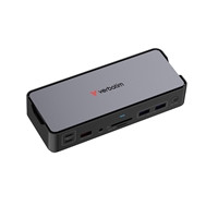 Verbatim USB-C Pro Docking Station Product Details Comprehensive Docking Solution: 15 ports including high-resolution HDMI and DisplayPort outputs 2 x HDMI, 1 x DisplayPort, 1 x RJ45, 1 x USB-A 3.2 Gen2, 2 x USB-A 3.2 Gen1, 1 x USB-A 2.0, 2 x USB-C 3.2 Gen2, 1 x SD card slot, 1 x microSD card slot, 1 x Audio, 1 x USB-C PD, 1 x USB-C Host port Enhanced Data Transfer Speed: USB 3.2 Gen 2 technology ensures rapid data transfer speeds Prepare for the future with 8K video output capability. It supports a triple 4K Display. Provides USB-C power charging - easily charge your USB-C device whilst still using other ports Kensington security lock slot 2-year limited warranty. Single-Cable Connection - Simplify your workspace CDS-15: 2 x HDMI | DP | RJ45 | USB-A 3.1 | 2 x USB-A 3.0 | USB-A 2.0 | 2 x USB-C 3.1 | SD | microSD | Audio | USB-C PD | USB-C Host Streamline your workspace with the Verbatim USB-C Pro 15 Port Docking Station. This innovative device simplifies connectivity by consolidating multiple ports into one sleek solution. With a single USB-C port, unlock the potential of fifteen versatile ports, including USB-A ports of various generations, SD and microSD memory card slots, an audio jack, RJ45 and DisplayPort connections, USB-C ports, and a USB-C PD port for seamless pass-through charging. Experience the future with support for 8K video output on a single screen or 4K resolution across triple displays. Up to 8K Ultra HD resolution Elevate your visual experience with the Pro Docking Station's two HDMI ports and DisplayPort, enabling seamless expansion across three compatible TVs or monitors. Whether you're unleashing the stunning clarity of 8K resolution at 30Hz on a single monitor via HDMI or DisplayPort, or enjoying vibrant 4K resolution across dual or triple monitors, this docking station delivers unparalleled versatility and performance. For HDMI output, the host USB-C port from your device must support video output. Wired network connection In addition to its versatile display options, the Pro Docking Station includes a Gigabit Ethernet port (RJ45), offering a reliable solution for instances when wireless connections prove inconsistent or unstable. By simply connecting your laptop to the wired network using a Gigabit Ethernet cable, you can ensure uninterrupted connectivity and seamless access to online resources, enhancing productivity and efficiency in your workflow. Enhanced Audio Easily connect your desktop speakers, headphones, or microphone using the convenient 3.5mm audio and microphone port on the docking station. As laptops become increasingly streamlined, the headphone jack is often one of the first features to be omitted. With the docking station, you don't need to depend on alternative connections - simply plug your audio devices directly into the docking station for a seamless and uninterrupted sound experience, ensuring that you never miss a beat. Four USB-A and USB-C Ports for all the accessories The Docking Station is equipped with a comprehensive array of USB ports to accommodate all your desktop accessory needs. For lightning-fast data transfer, the Docking Station features USB-A 3.2 Gen 2 and two USB-C 3.2 Gen2 ports, delivering speeds of up to 10Gb/s. Additionally, two USB-A 3.2 Gen1 ports offer speeds of up to 5Gb/s. For legacy devices, there's a USB 2.0 port providing speeds of 480Mb/s. USB-A ports will not support Apple SuperDrive / Nintendo Switch or charge iPads and other Tablets. Easy Laptop Charging The USB-C PD (Power Delivery) port ensures seamless pass-through charging. With this feature, the USB-C port on the Pro Docking Station enables charging directly from the power source, allowing your laptop to receive up to 80W of power while utilizing all the other ports on the hub. Memory Card Slots The integrated SD and microSD memory card slots make it easy to access data from various memory cards. Specifications Interface: 2 x HDMI, up to 8K@30Hz, 1 x DisplayPort, up to 8K@30Hz, 1 x RJ45, up to 1Gb/s, 1 x USB-A 3.2 Gen2, up to 10Gb/s, 2 x USB-A 3.2 Gen1, up to 5Gb/s, 1 x USB-A 2.0, up to 480Mb/s, 2 x USB-C 3.2 Gen2, up to 10Gb/s, 1 x SD 4.0, 1 x microSD 3.0, 1 x Audio jack, 1 x USB-C PD, input up to 100W, 1 x USB-C Host Port Data Transfer Rate: up to 10Gbps Memory Card Slots Transfer Rate: SD up to 250MB/s read and write, microSD up to 104MB/s read and 80MB/s write HDMI Frequency: up to 8K/30Hz or 4K@60Hz Product Weight: 308 grams approx Product Dimensions: 168mm x 68.5mm x 33mm (L x W x H) Cable Length: 1m Max. Current: USB output 5V/0.9A Power Delivery: up to 80W Operating Temperature: 0 - 40 C Storage Temperature: -20 - 85 C System Requirements USB-C host port Windows OS 11, 10 Mac OS 10.2 or above Pack Contents USB-C Pro Docking Station CDS-15 USB-C to USB-C Cable Quick Start Guide